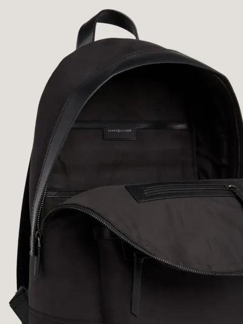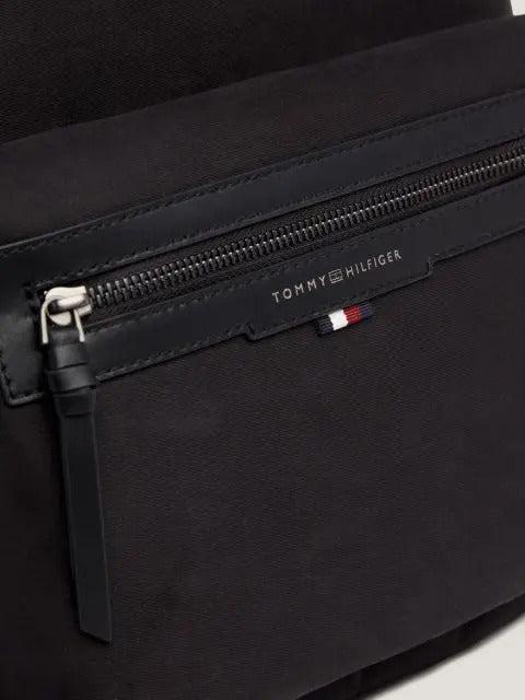 Denne ryggsekk er kuppelformet og har vannavstøtende finish, Tommy Hilfiger-logo foran, dobbel glidelås, håndtak på toppen, justerbare skulderstropper, front lomme med glidelås og en innvendig glidelås lomme