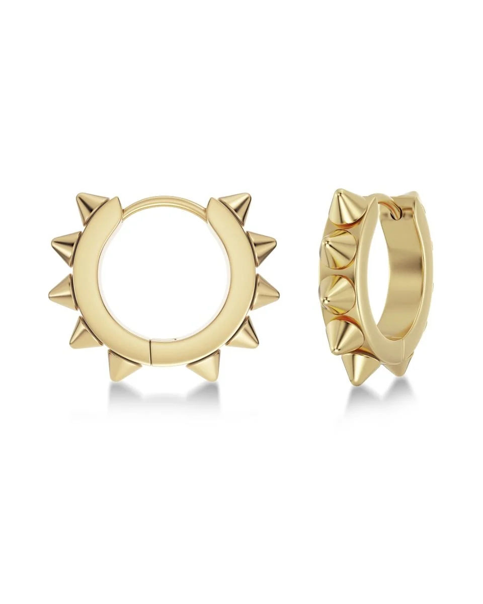 Trendy Peak Icon vises her som større hoops med de klassiske naglene rundt hele øredobben. Peak Icon hoops er favorittene til alle anledninger og vises her i blankt 14K gullbelegg. Kombiner dem gjerne med størrelse S hvis du har flere hull i ørene for en stilig look.