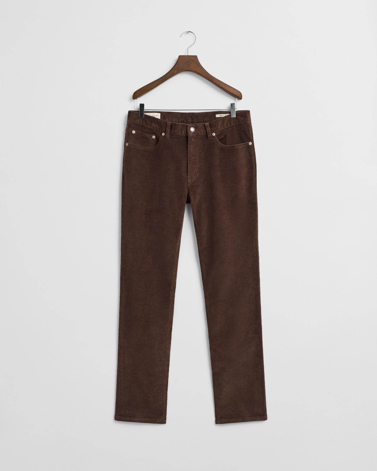 Reg Cord Jeans i rik brun farge er et stilrent valg for en moderne garderobe. Laget av taktil kordfløyel med komfortstretch, gir disse buksene både stil og bevegelsesfrihet. Den mid-rise passformen og lett avsmalnende ben gjør dem til et allsidig plagg for høst- og vintermåneder.