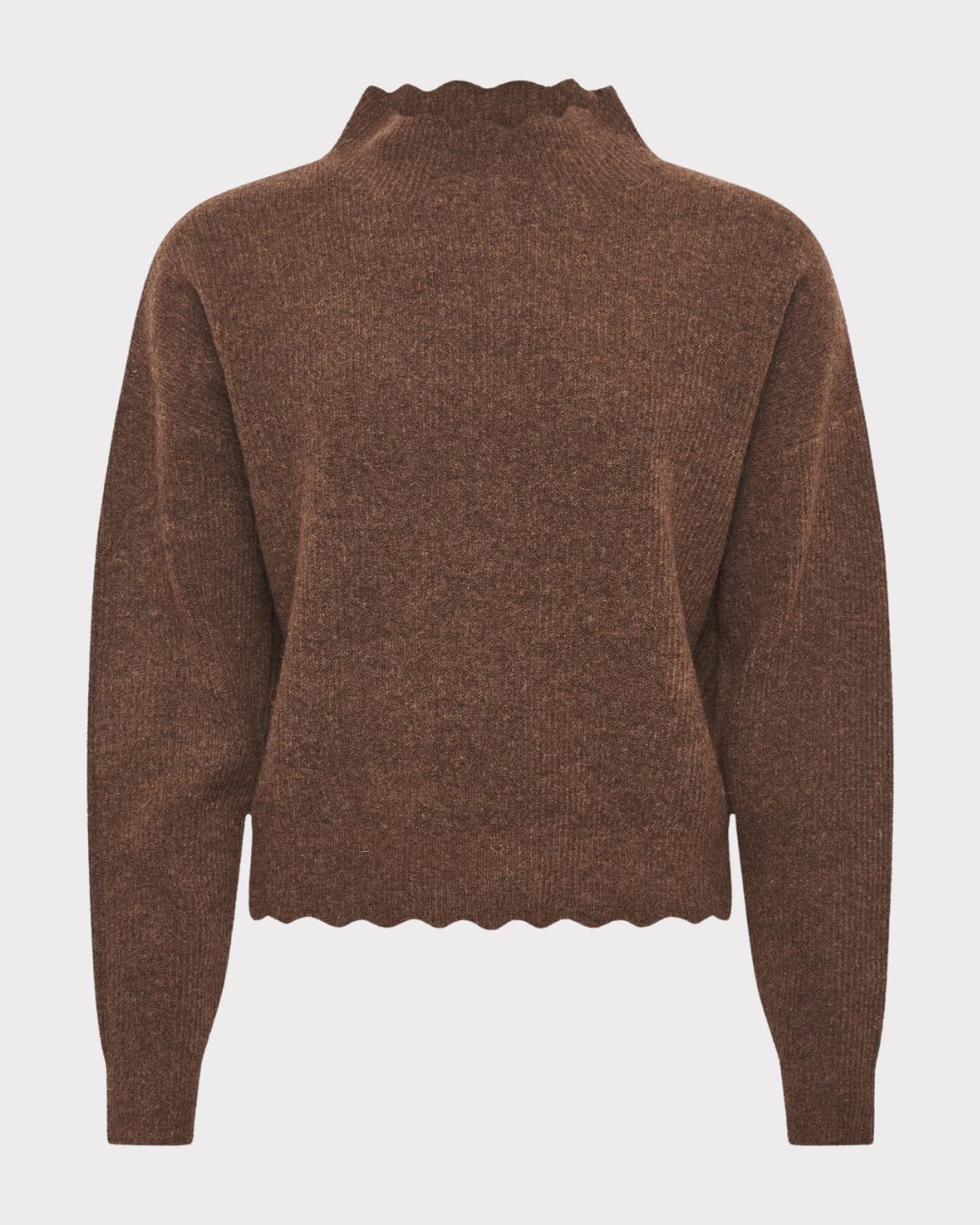 Genser laget i en deilig ull- og mohairblanding, føles den varm og behagelig mot huden. Den lekre blondeavslutningen på halsen og nedkanten gir et feminint og elegant preg. Perfekt til både hverdagsbruk og mer stilfulle anledninger.