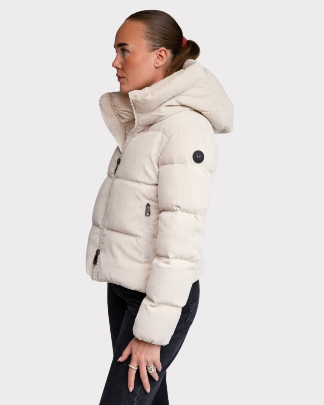 Val Cenis Short fra Monel er en feminin, kort dunjakke med lett og luftig passform som samtidig holder deg varm. Jakken har hette, glidelåser i sidene, reflekterende logodetalj og praktiske lommer.