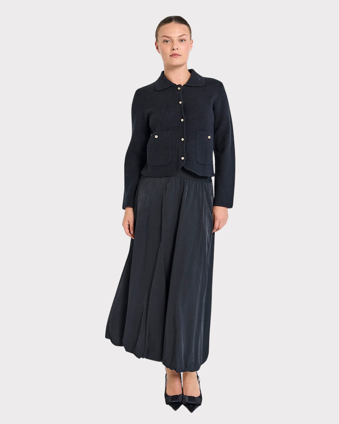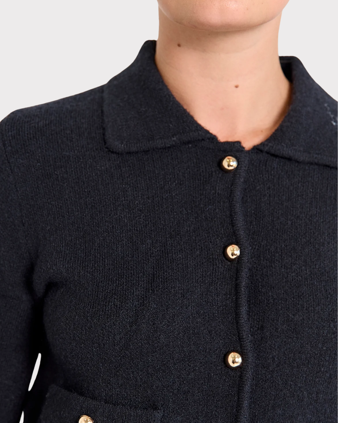 Cardigan fra Freequent i et mykt, finstrikket materiale. Cardiganen har en enkel silhuett med normal passform, knappelukking, klassisk krage og praktiske frontlommer.