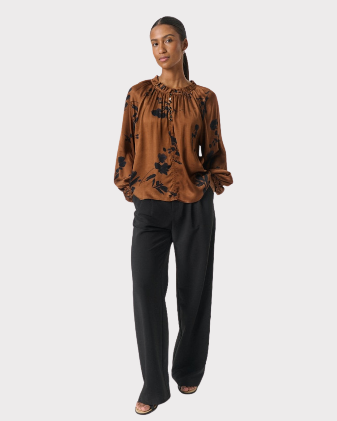 VenessaPW BL er en stilren skjorte laget av 50% viskose og 50% LENZING™ ECOVERO™, som gir en myk og behagelig følelse. Den har en normal passform og kommer i en elegant farge kalt Sorrel Horse Shadow Branch, perfekt for enhver anledning.