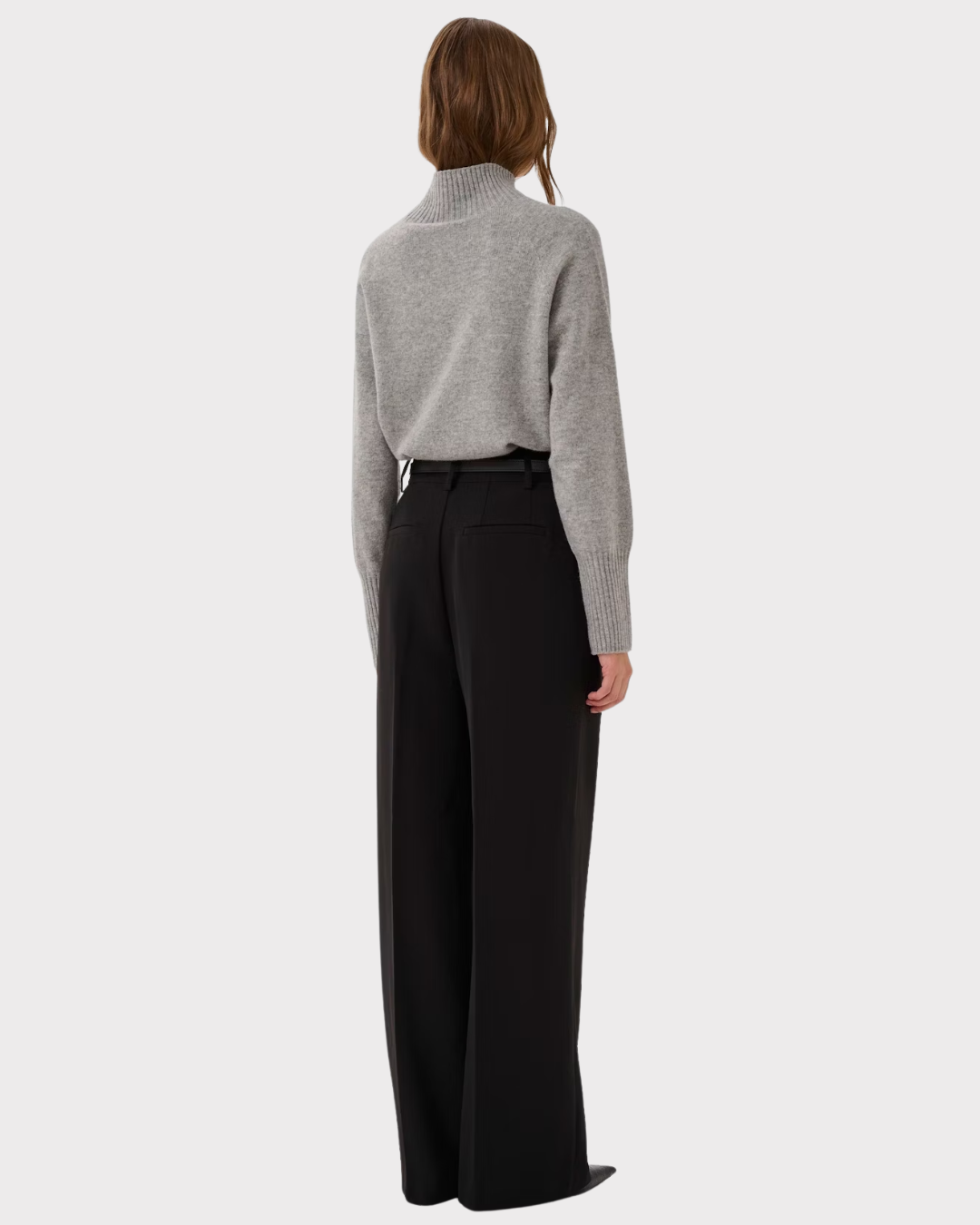 Genser med rett passform, høy ribbestrikket hals, lange ermer og ribbestrikkede avslutninger. Myk, teksturert overflate gir et moderne uttrykk.