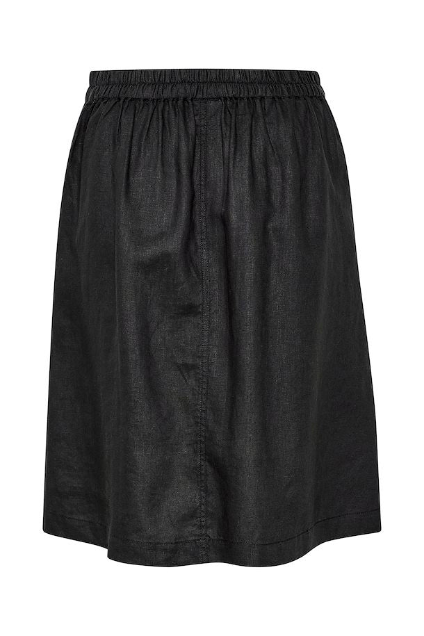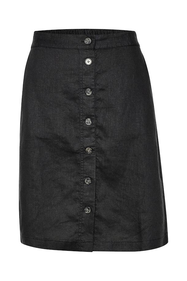 Skjørtet har strikk i bakkant og knapper i front.