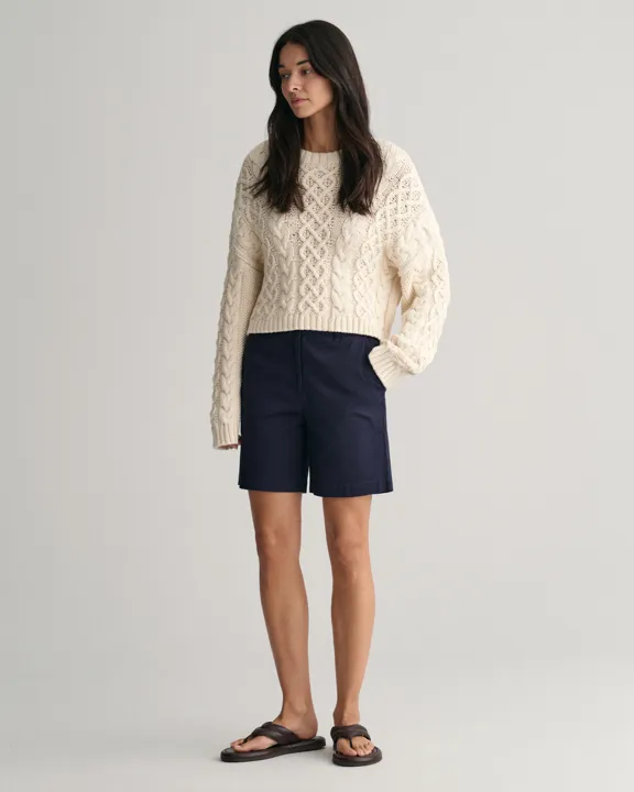 Shorten har skrålommer foran og passepoilerte baklommer.