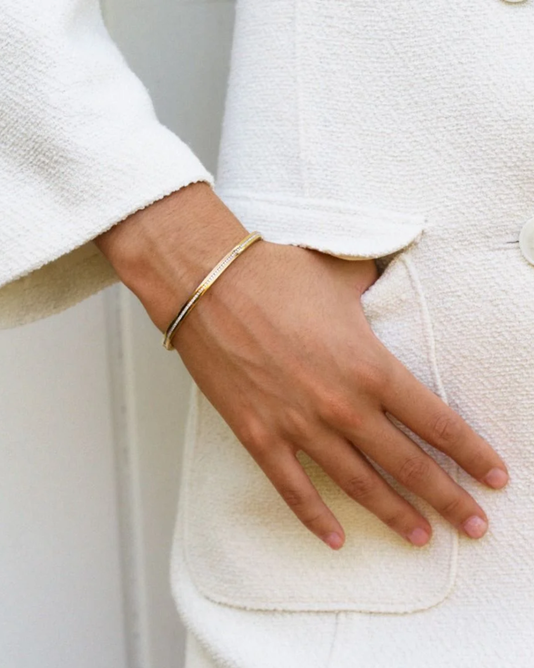 Josefin Bangle Gold er et stilrent armbånd som tilfører et elegant preg til ethvert antrekk. Dette tidløse smykket er perfekt for de som ønsker å legge til et snev av luksus i hverdagen.